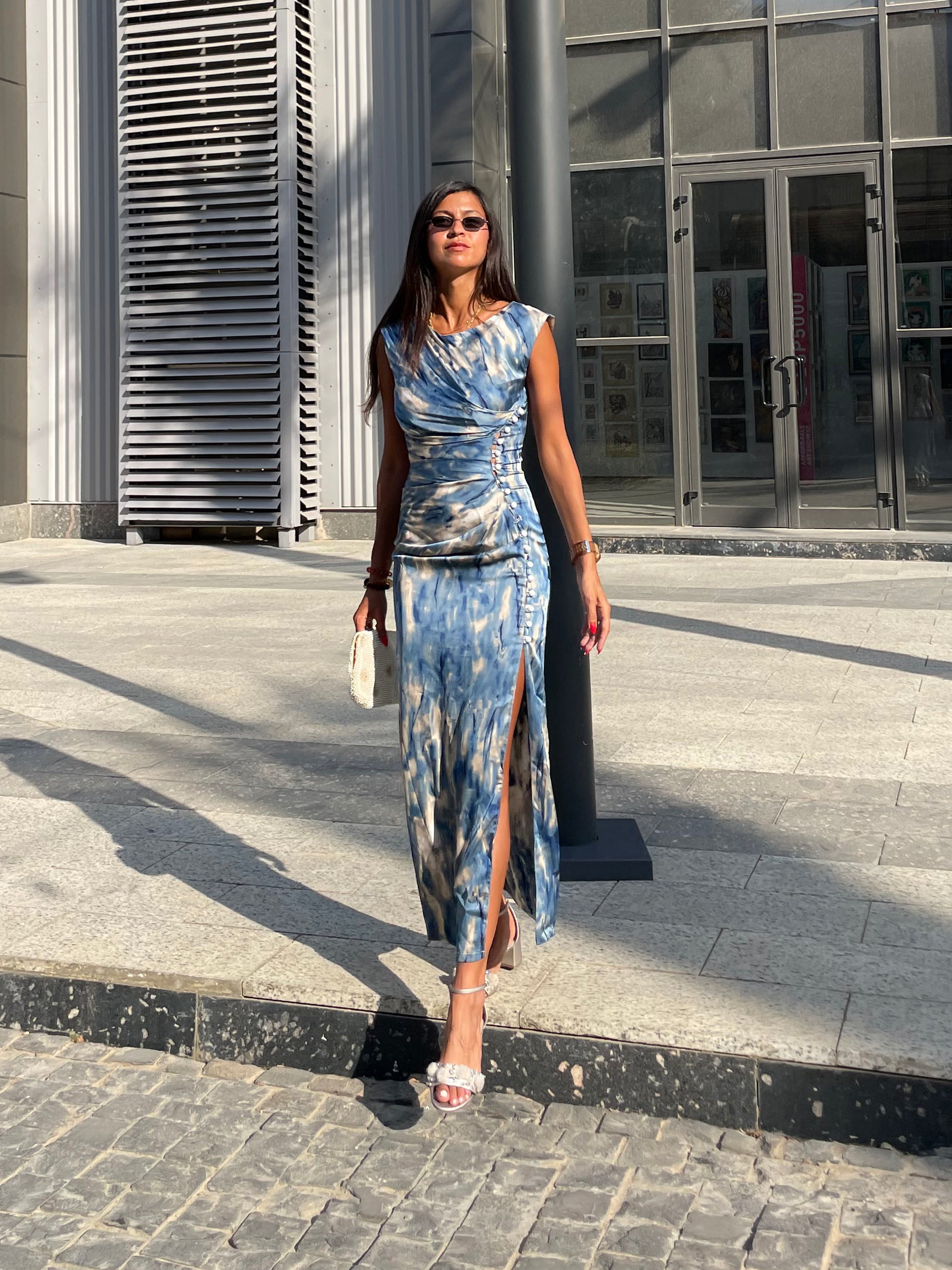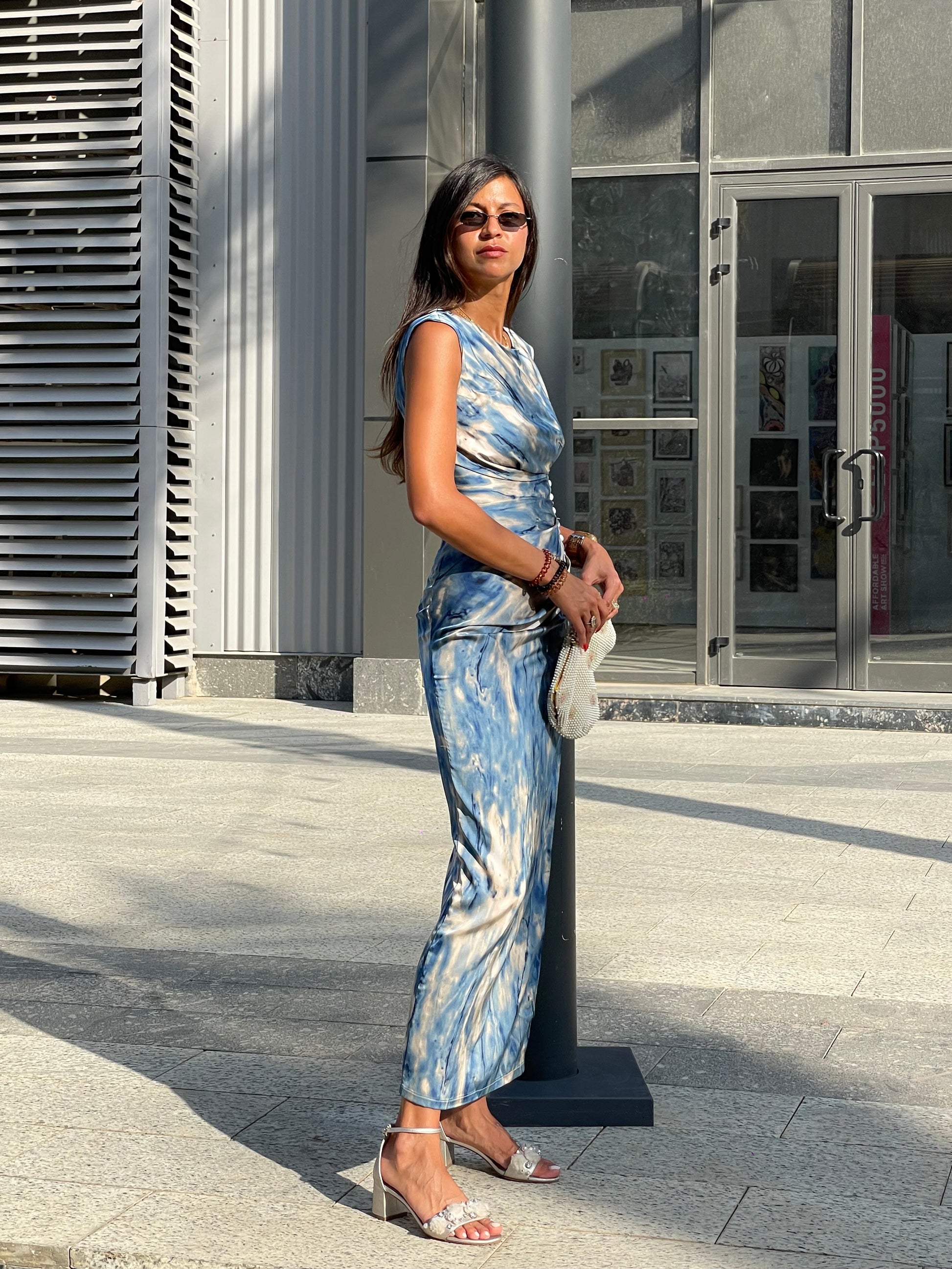 - Diagonal drapes from bust to hip
